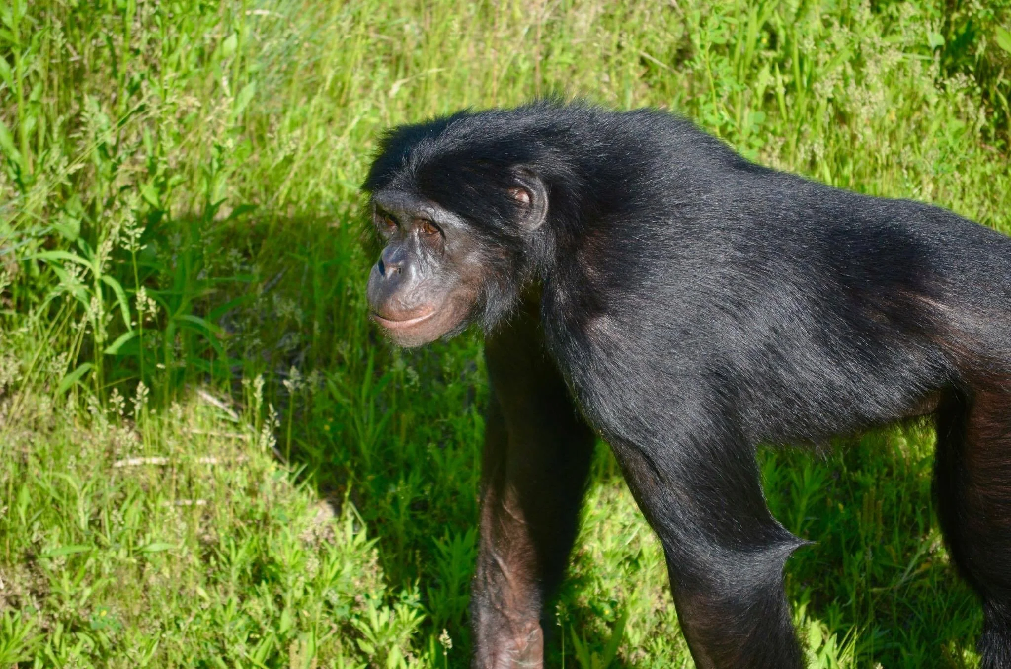 Maisha was born to Matata on May 28th, 2000. He is Elikya’s full brother and Nyota’s half brother. Maisha is our resident goofball and he never misses an opportunity to be silly and playful. Maisha is Teco and Clara’s go-to playmate, and he can even get Kanzi to laugh hysterically. He understands a number of spoken English words, and will often play tricks on his caregivers. Maisha’s favorite foods are hard-boiled eggs, yogurt, and cottage cheese - which in moderation, provide excellent and healthy sources of protein for our apes.